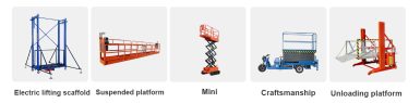 We are a professional manufacturer of electric scaffolding with 20 years of experience in the production of various lifting equipment such as scaffolding and scissor platforms.